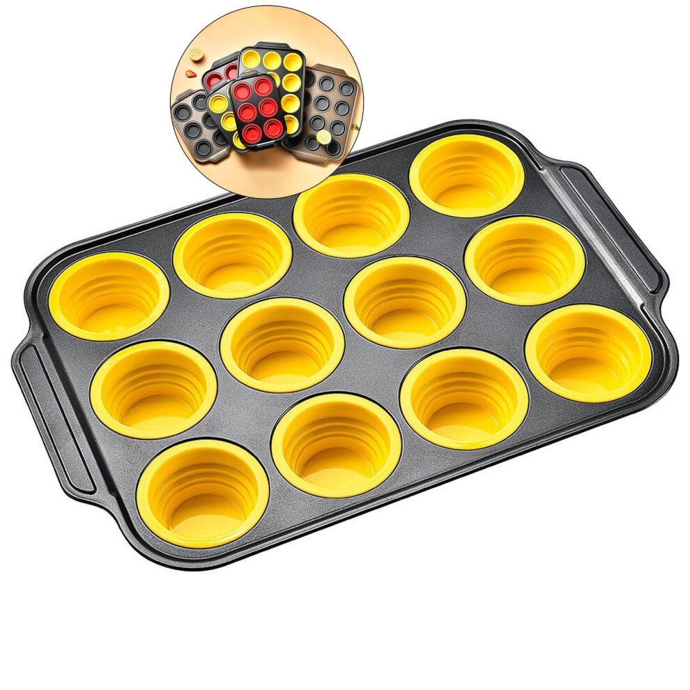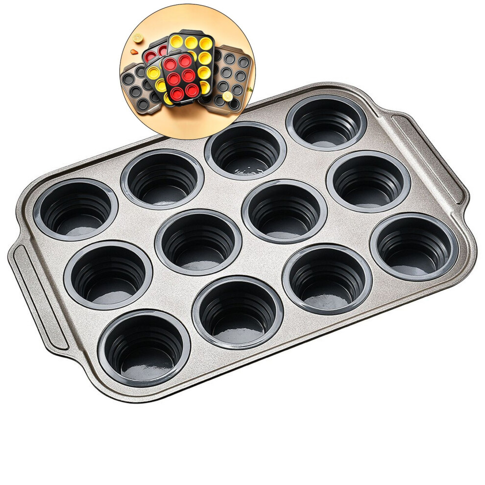 Non Stick Muffin Tray - 12 Cup Silicone Pan Cake Baking Mould for Muffins, Yorkshire Puddings, Cupcakes, Bakeware