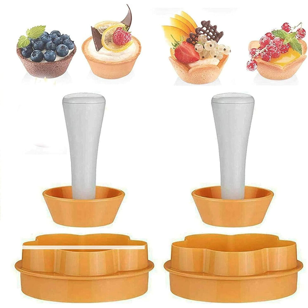 Pastry Dough Tart Tamper Kit with 6-Cavity Muffin Pan, Plastic Cookie Cutter & Tart Shell Molds for Cupcakes (2Pcs)