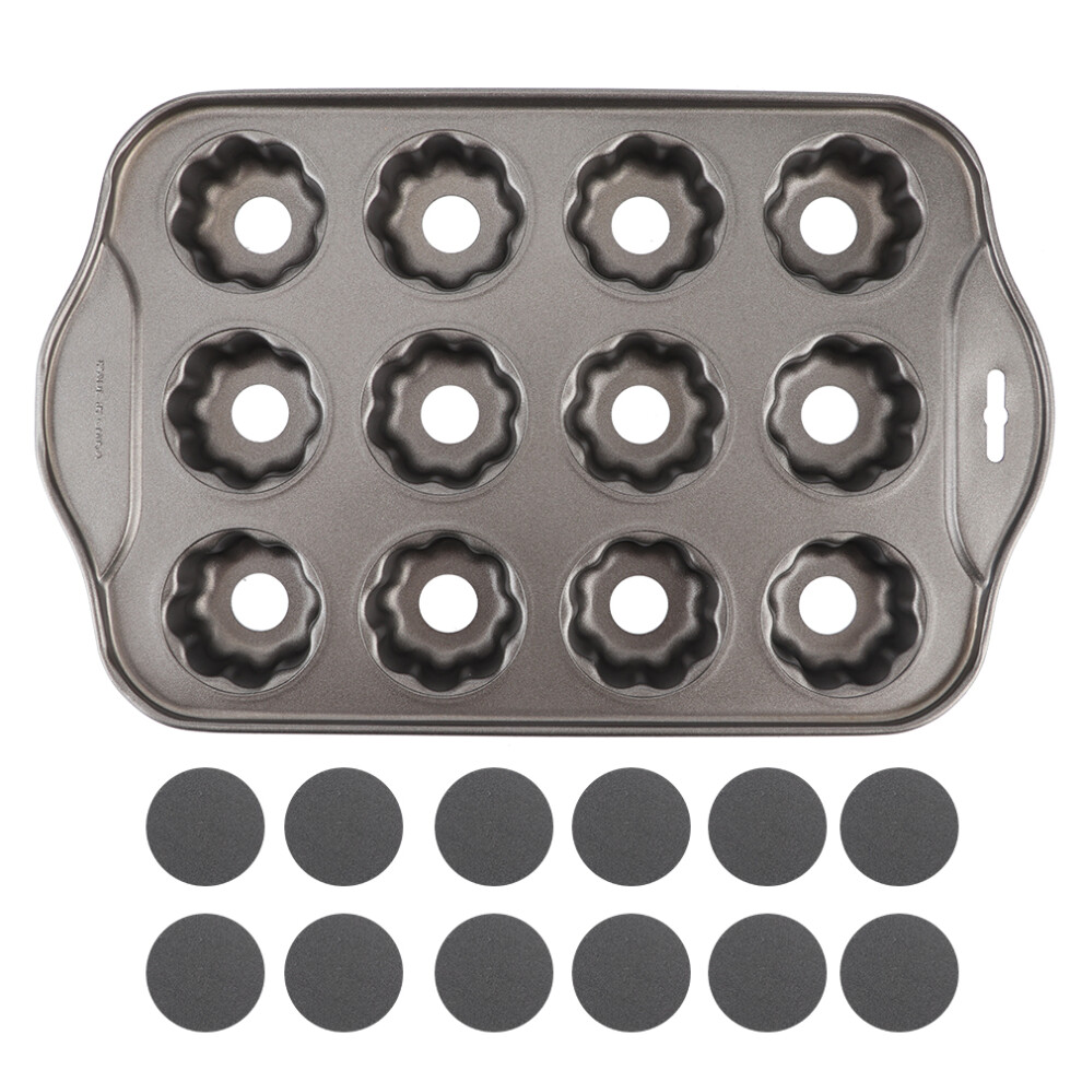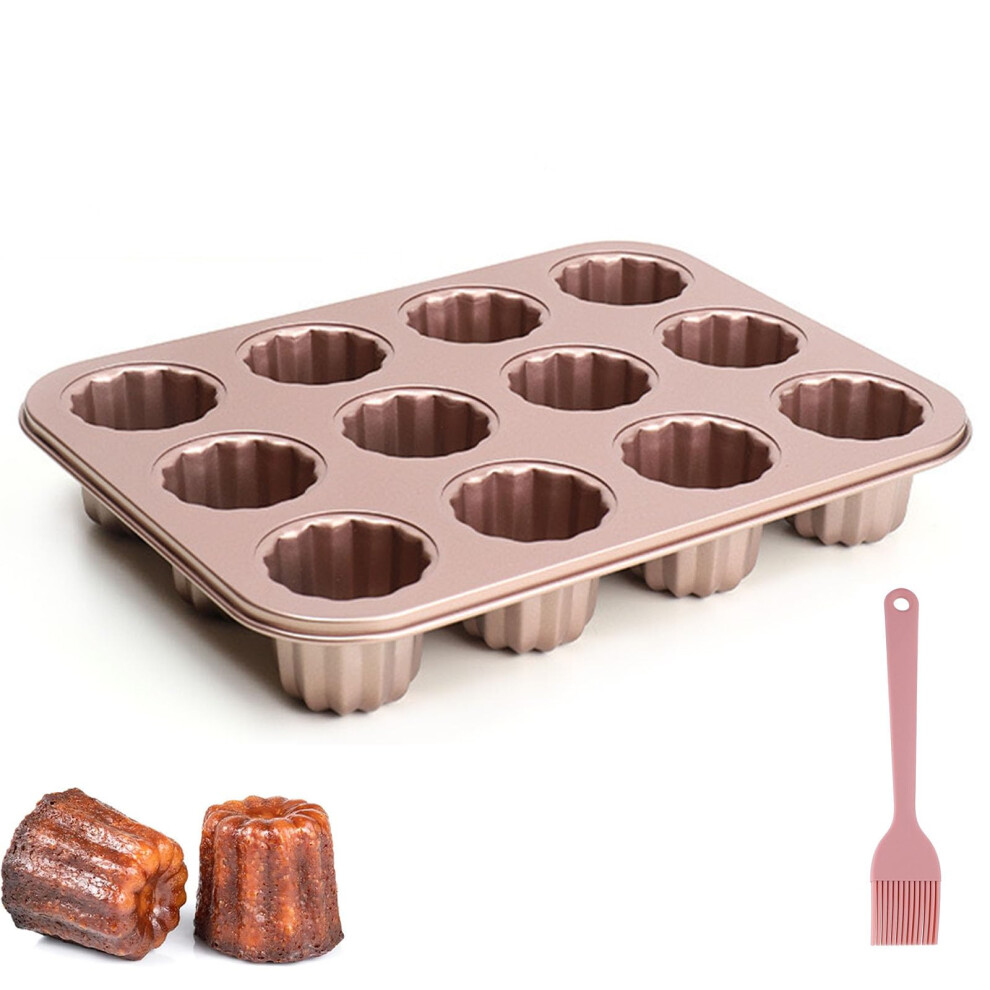 Canele Mold 12Cavity Carbon Steel NonStick Muffin Pan for Oven Baking Cupcakes and Bread