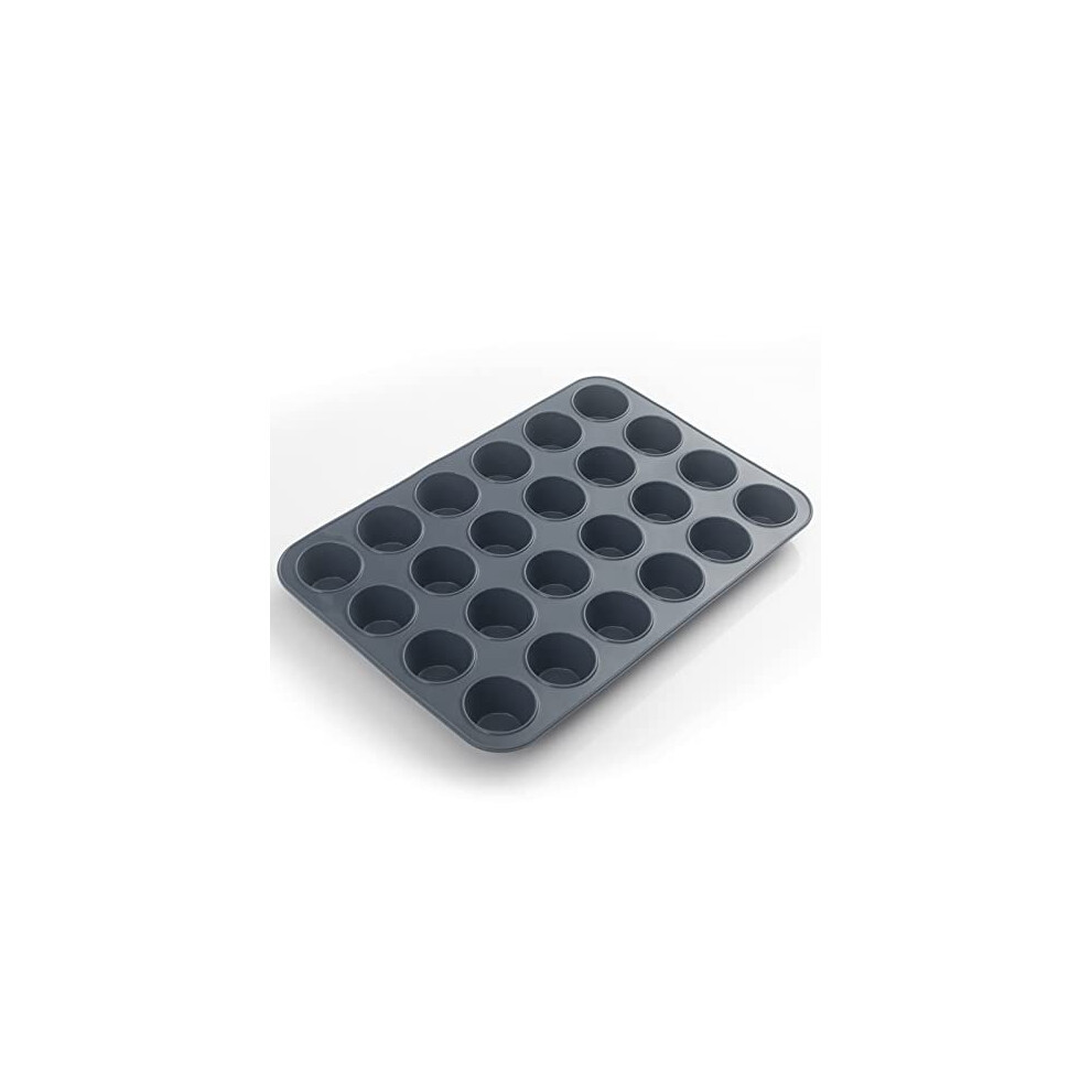 SUPER KITCHEN Mini Muffin Tray 24 Cup Silicone Muffins Pan, Non-Stick Cupcake Tin, Silicon Mould Bakeware, Reusable Baking Case for Mini Mince Pie, Cupcakes, Dishwasher Safe, 34 x 23 x 2.5 cm (Grey)