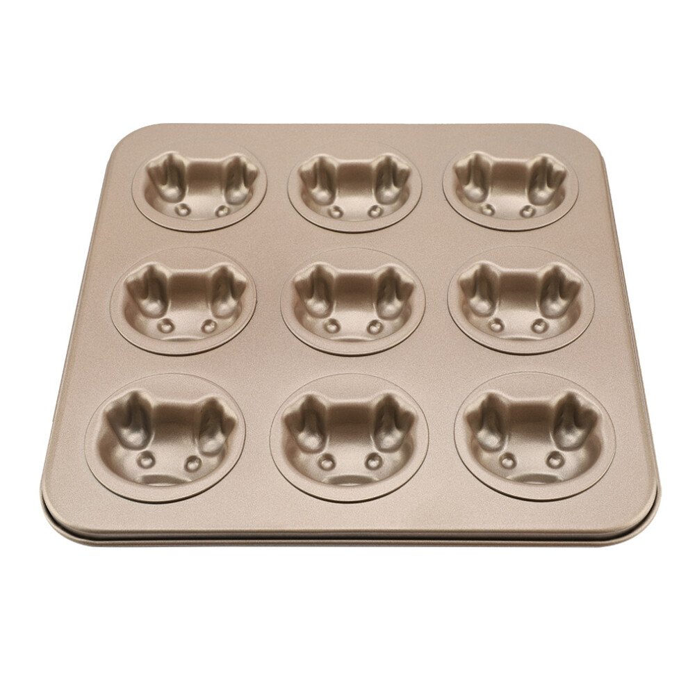 9-Cavity Cake Mold for Cupcakes, Portable Pig Design Carbon Steel Baking Tray, Reusable Non-stick Muffin Pan, Even Heating for Cheesecakes Brownies Co
