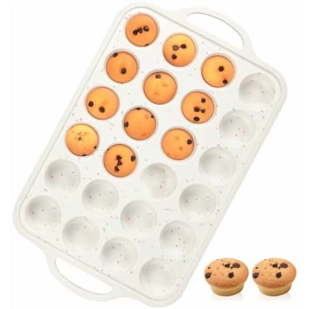 Mini Muffin Tray 24 Cup Silicone Muffins Pan, Non-Stick Cupcake Tin, Silicon Mould Bakeware, Reusable Baking Case for Mini Mince Pie, Cupcakes,