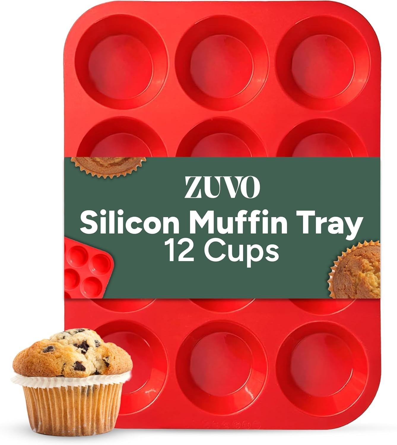 Zuvo Silicone Muffin Tray 12 Cups Non-Stick Baking Pan for Cupcakes Brownies