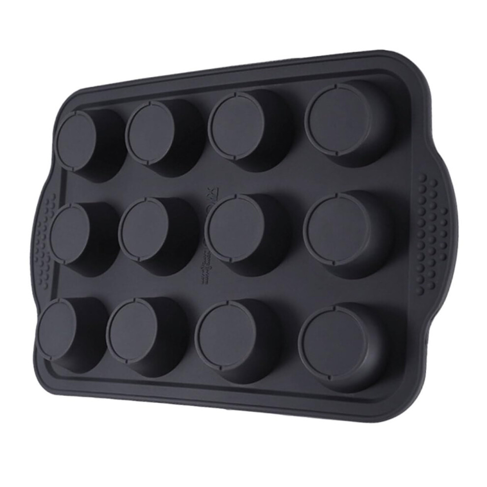 12Cavity Silicone Muffin Pan For Cupcakes Tarts Cookies Baby Food Easy Release Flexible Material Dishwasher Safe Grey