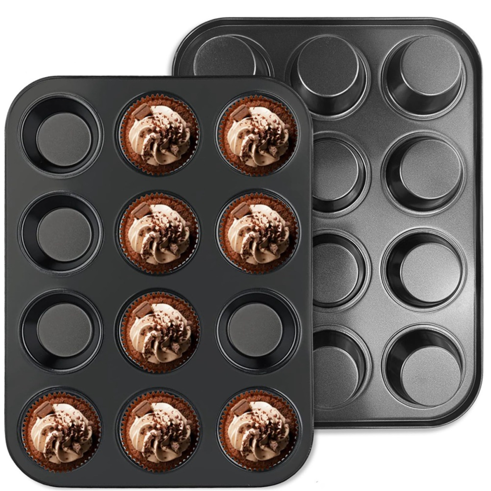 Zuvo Nonstick 12 Cup Muffin Tray - BPA Free & Dishwasher Safe Cupcake Pan Muffin Tray with Stain-Resistant, Baking Mould for Muffins or Cupcakes, Bakeware - (Black)