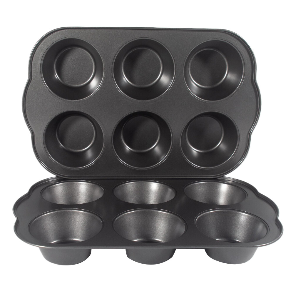 Jumbo Muffin Pan 3.5 Inch NonStick 6 Cup Set of 2 Heavy Duty Carbon Steel for Extra Large Cupcakes