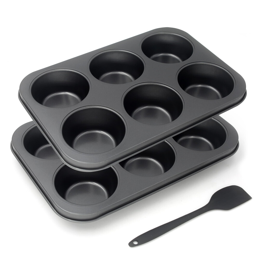 Jumbo Muffin Pan Set of 2, NonStick 6Cup ExtraLarge Baking Pans with Spatula for Cupcakes