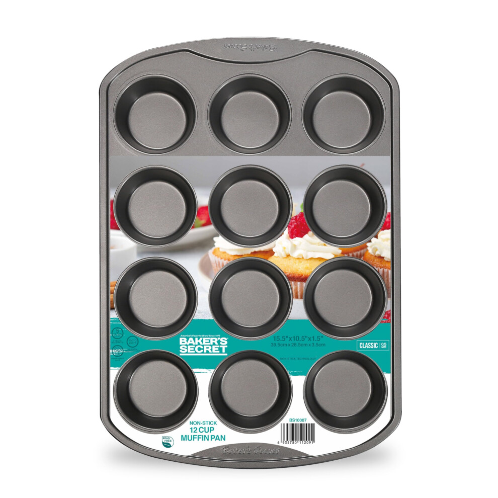 Baker's Secret 12cup Muffin Pan Cupcake Nonstick Pan - Carbon Steel Pan for Muffins Cupcakes Non stick Coating Easy Release Dishwasher Safe DIY Bakewa