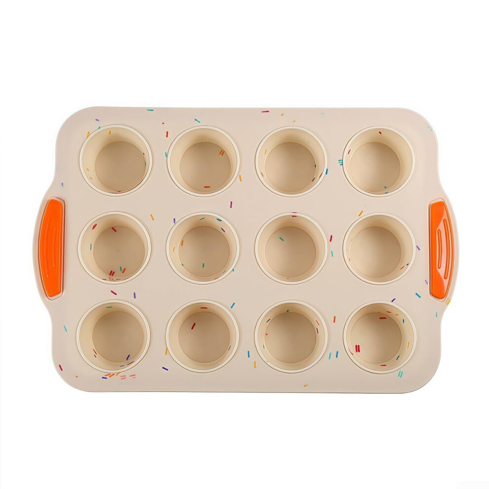 NonSilicone Baking Tray 12Hole Muffin Pan For Cupcakes And Egg Bites Durable Flexible Heat Resistant 230C Beige