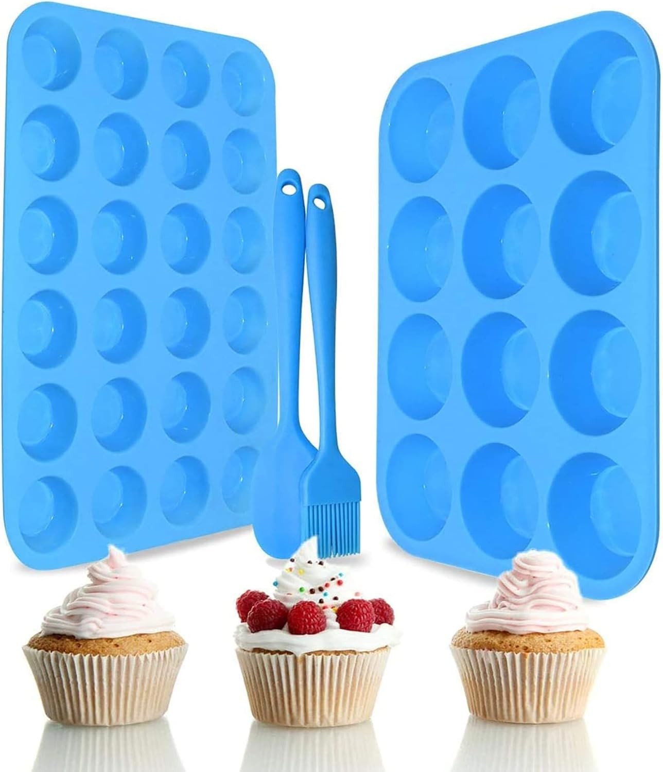 Mini Muffin Tray 24 Cup Silicone Muffins Pan, Non-Stick Cupcake Tin, Silicon Mo