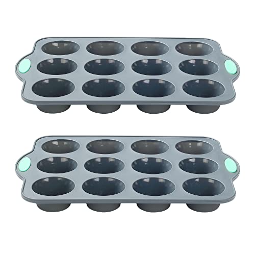 To encounter Silicone Muffin Pan, 2 Pack 12-Cup, Nonstick Baking Cups, Mini Cupcake Pan with Metal Reinforced Frame More Strength