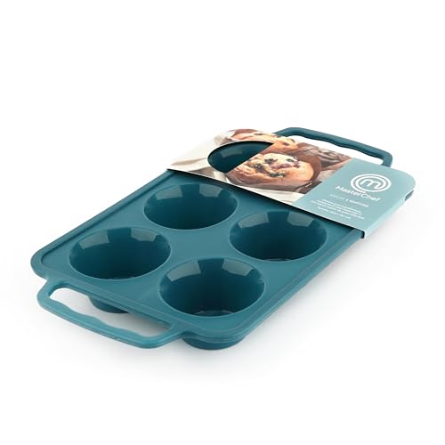 Master Chef Junior – Muffin Pan for 6 Muffins with Silicone Handles Turkey Blue – Non-Stick and Practical