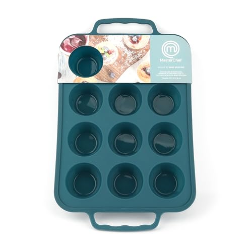 Master Chef Junior – 12 Mini Muffin Pan with Silicone Handles Turkey Blue – Ideal for Pastries