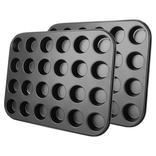 ASelected 2 Pack Mini Baking Tray,24 Cup Muffin Baking Pan,Non-Stick Cupcake Tin,Carbon Steel Muffin Tin Cupcake Baking Tray,Deep Muffins Pan,Reusable Baking Case for Mini Mince Pie,Grey