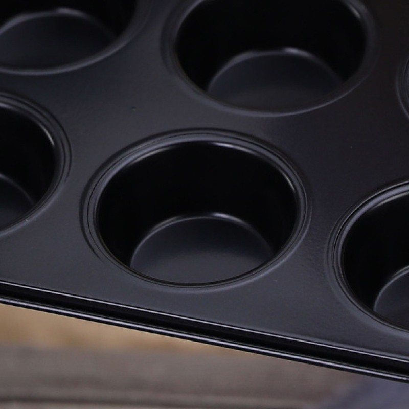 Carbon Steel Cupcake Pan Non Stick Baking Pan Black Quick Release Muffin Tin BL