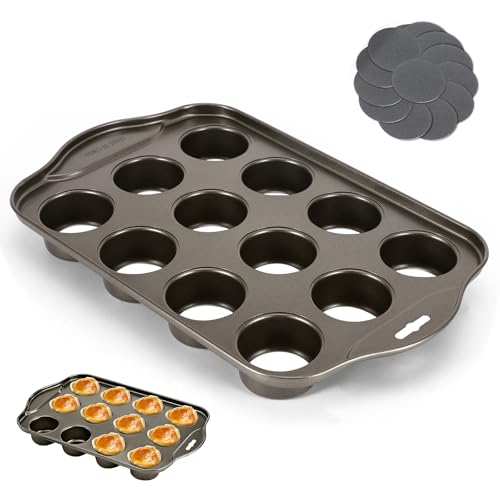 OUZHOU 12 Cup Muffin Trays, Non-Stick Cupcake Tray Removable Bottom, Carbon Steel Muffin Tin Dishwasher Safe Reusable Mini Muffin Tray for Yorkshire Pudding Pies Cupcakes Brownies
