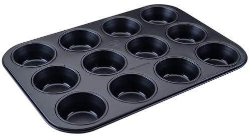 Hairy Bikers Bakeware, 12 Cup Muffin Tray, Non-Stick Coating, PFOA Free, Oven Safe, Dishwasher Safe, Freezer Safe, Black