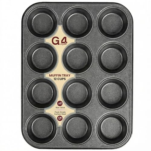 G4GADGET Nonstick 12 Cup Muffin Tray - Dishwasher Safe, Premium Bakeware for Muffins & Cupcakes, Heat Resistant, Stain-Resistant, Oven-Safe up to 450°F, Black
