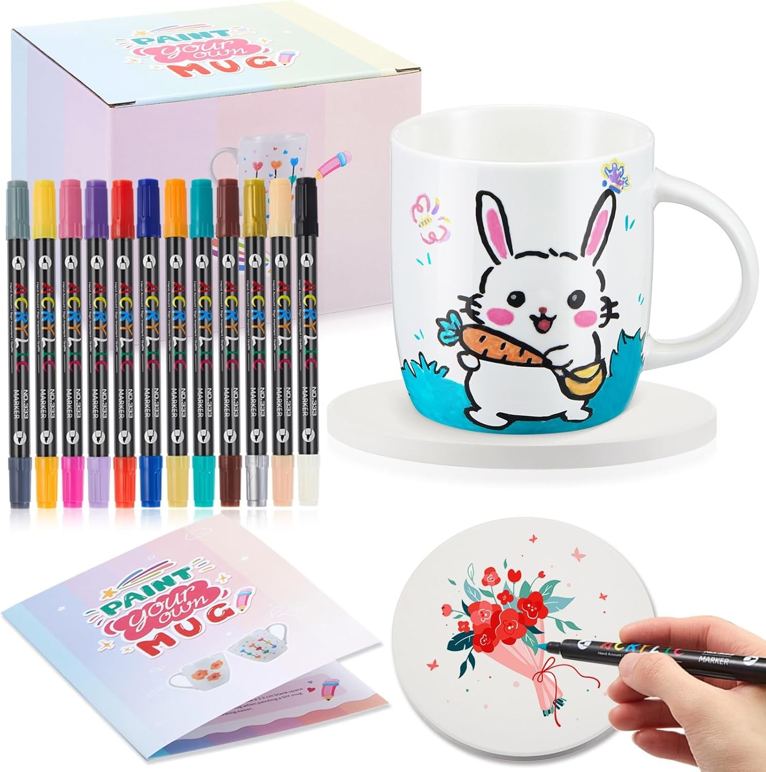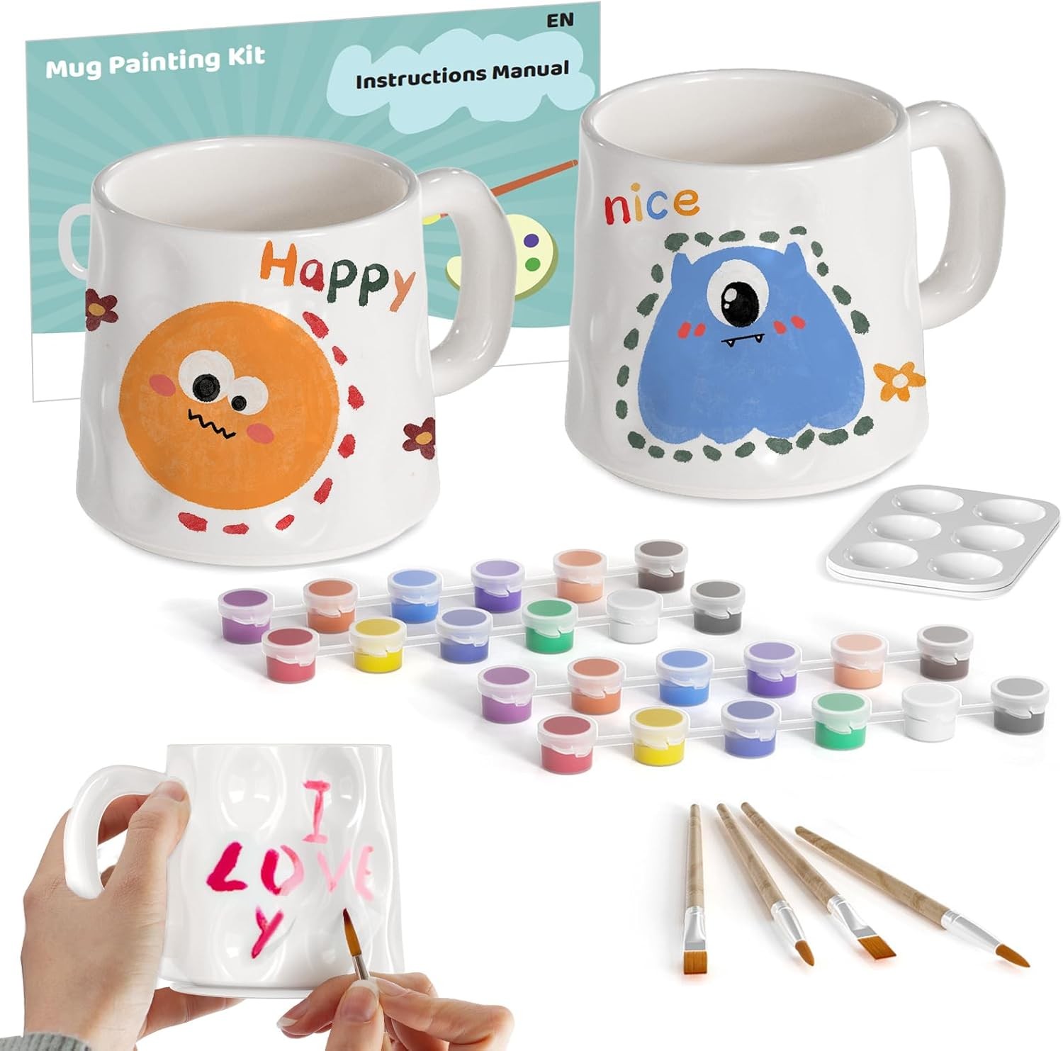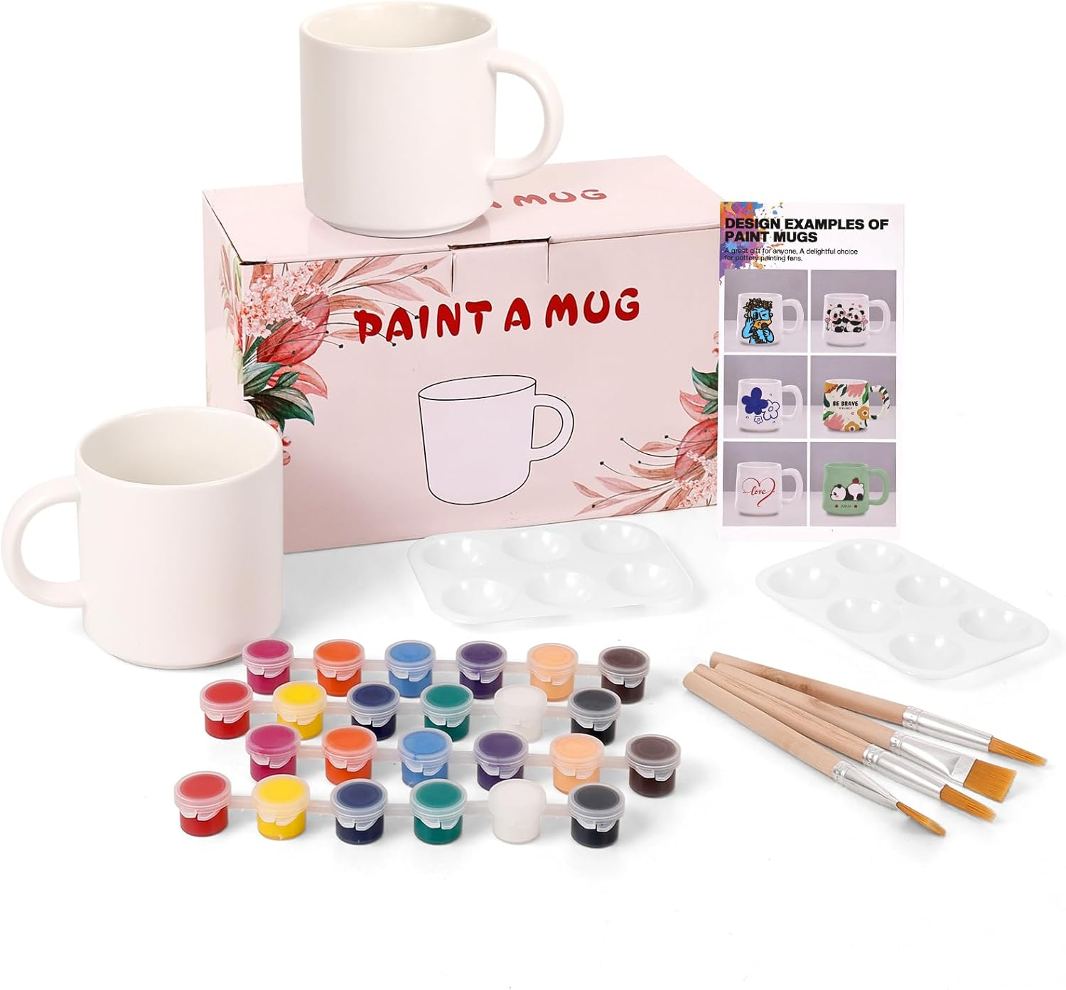 ONLYFUN Paint Your Own Mug Set – Pottery Painting Kit for Adults & Kids, Incl