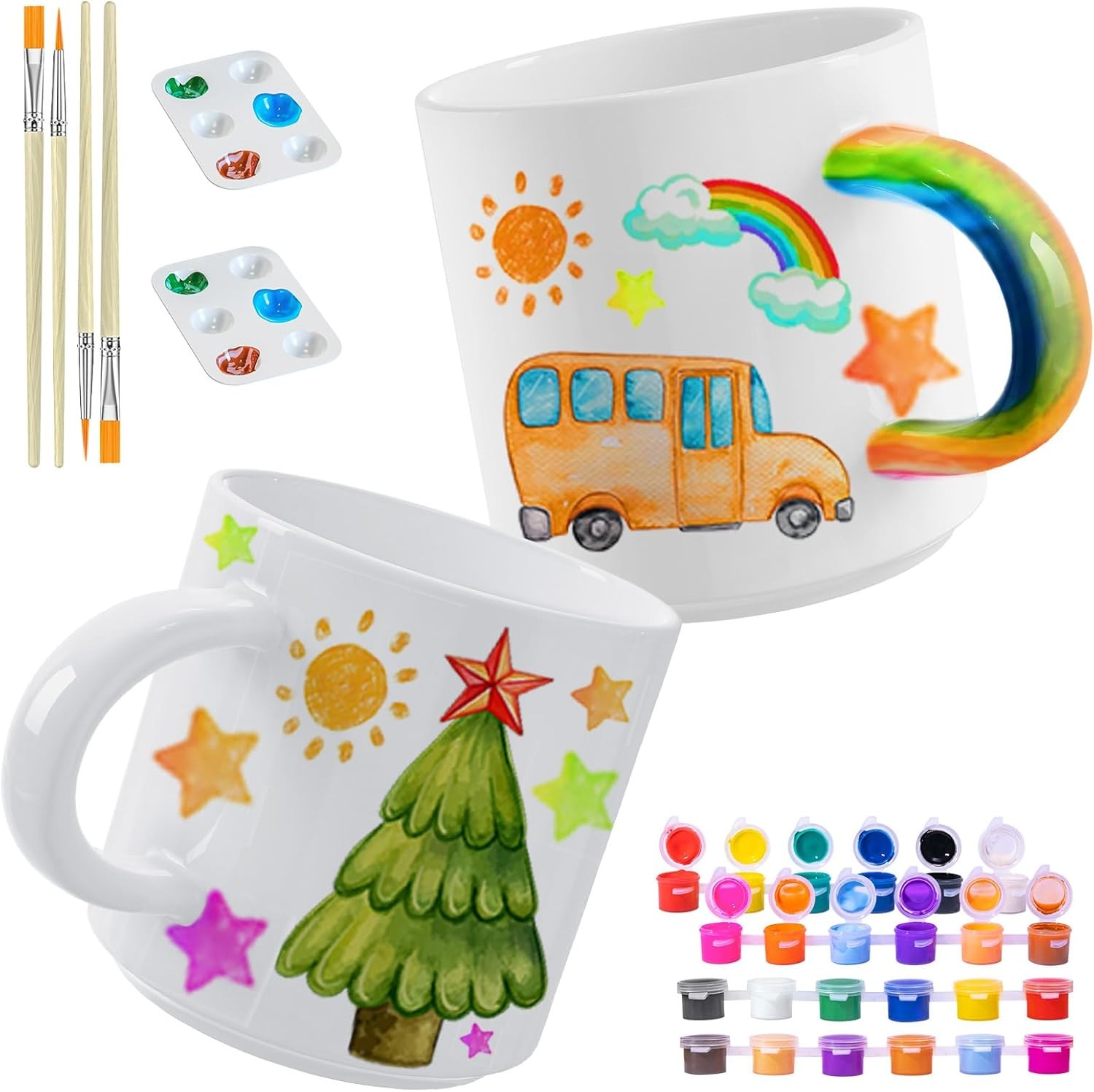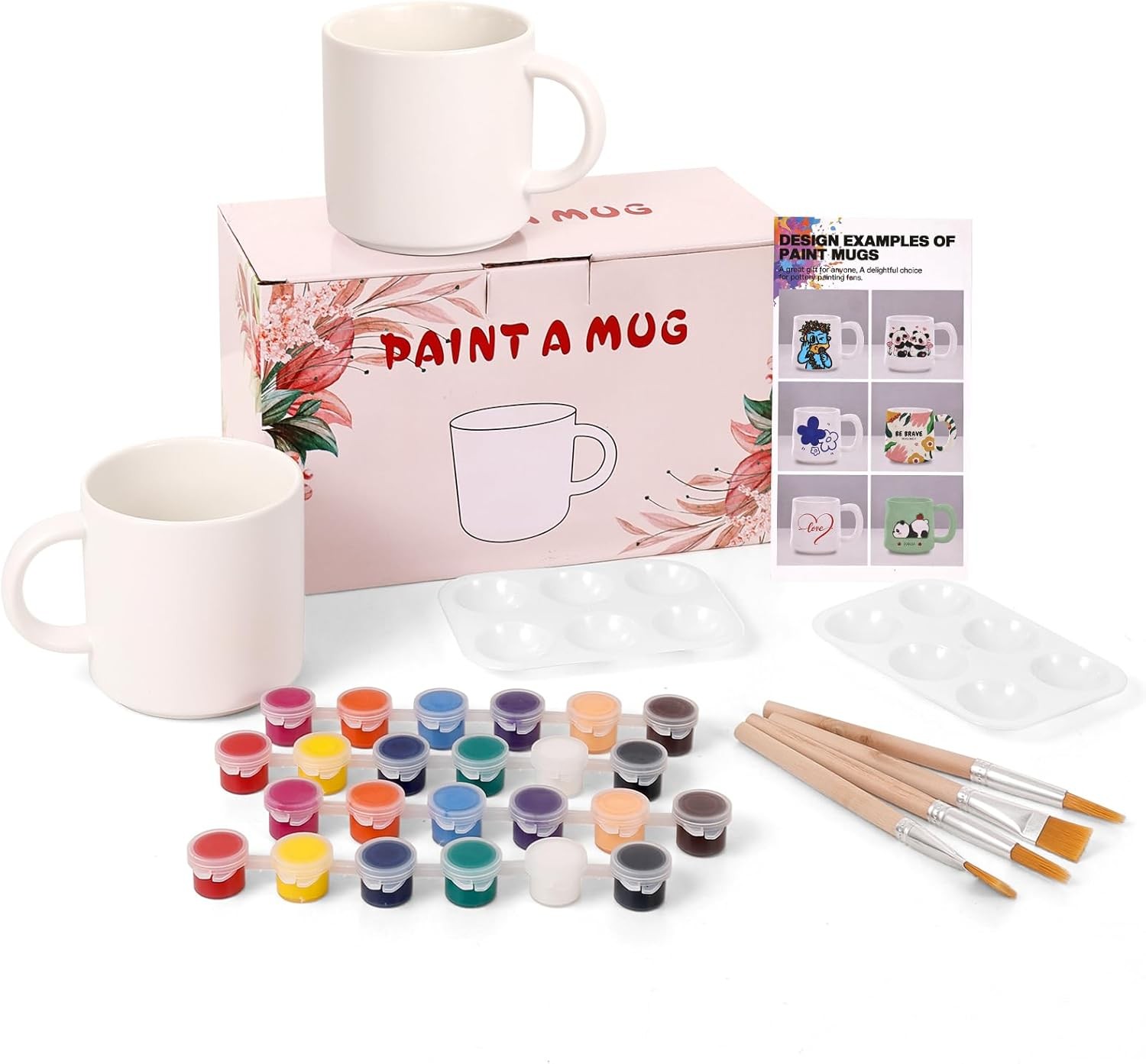 Mug Painting Kit, Paint Your Own Ceramic Mug Kit, 2 Mugs Pottery Painting Kit f