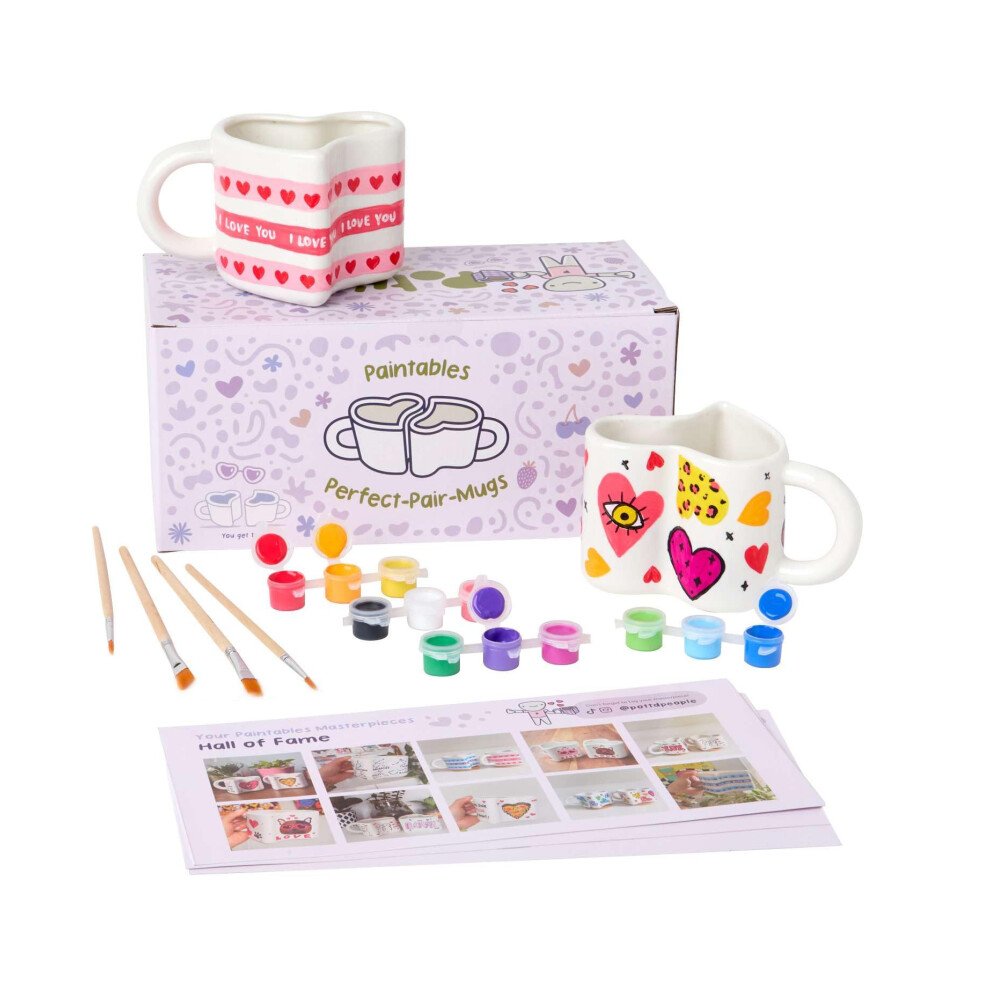 Pott'd Paintables Perfect-Pair Mugs - Heart-Shaped Mug Painting Kit for Couples Includes Ceramic Paints Brushes & Inspiration Guide for Date Nights