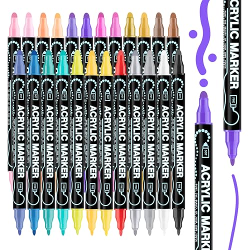 Kebuye Acrylic Paint Pens Painting Markers - 24 Colours Art Pen Set Double Sided with Dot & Fine Marker Pens for Decorating Ceramic Rock Stone Mug, Creative Drawing Supplies for Graffiti