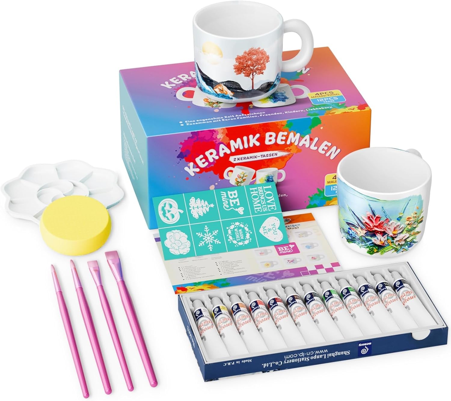 Roaxkois Ceramic Painting Set - Creative Ceramic Craft Set with Paints, Brushes and Instructions - Paint the Perfect Mug for Individual Gifts and Leisure