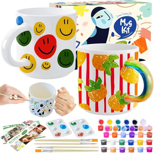 EILYGK Mug Painting Kit, Paint Your Own Ceramic Mug Kit, 2 Mugs, Pottery Painti