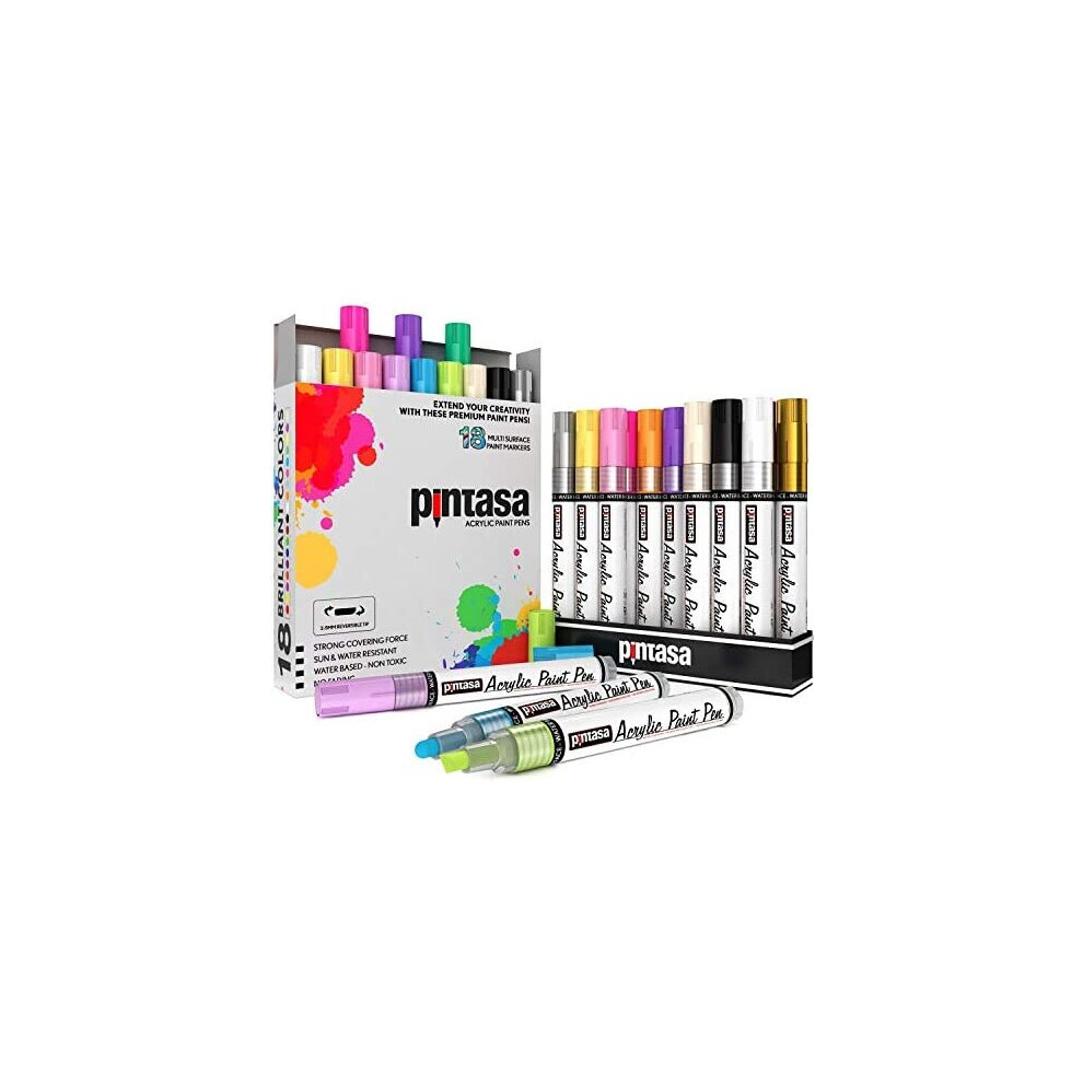 PINTASA Acrylic Paint Pens ? Set of 18 Rock Painting Art Markers ? Water-Based Couloring Kit for Glass, Canvas, Ceramic, Porcelain, Wood, Mug, Fabric,