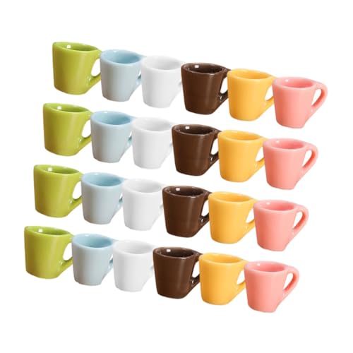 Veemoon 24pcs Miniature Coffee Mug Set Dollhouse Tea Cups 6 Colors White Pink Blue Yellow Coffee Green Small Dollhouse Kitchen Decor Accessories for Collectible