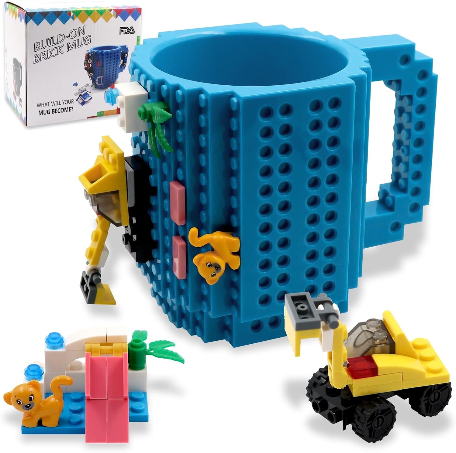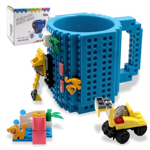 HUISHENG Brick Mug Sets, Coffee Cup, Valentines Easter Fathers Day Birthday Present Christmas Santa Gifts for Men Dad Him Kids Adult Boy Girl Teacher Friend (Blue)