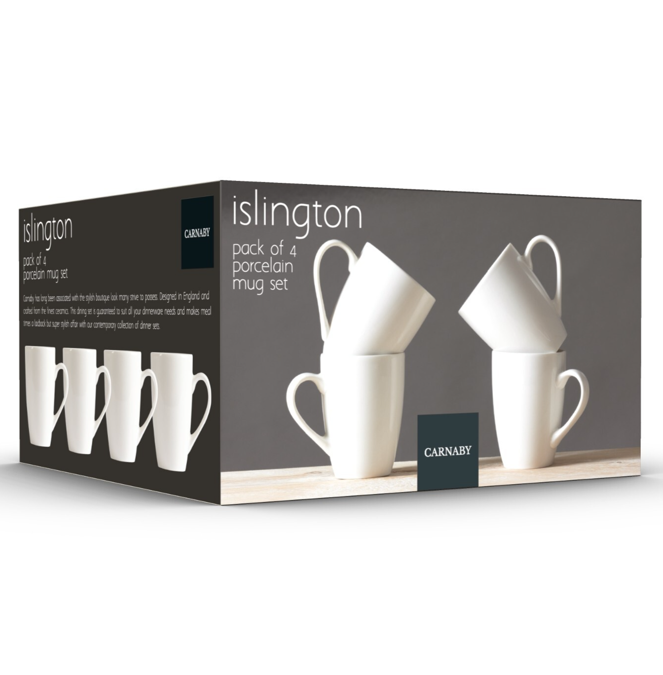 Carnaby White Porcelain Mugs Set of 4 Ceramic Coffee & Tea Kitchen Mug Gift Sets