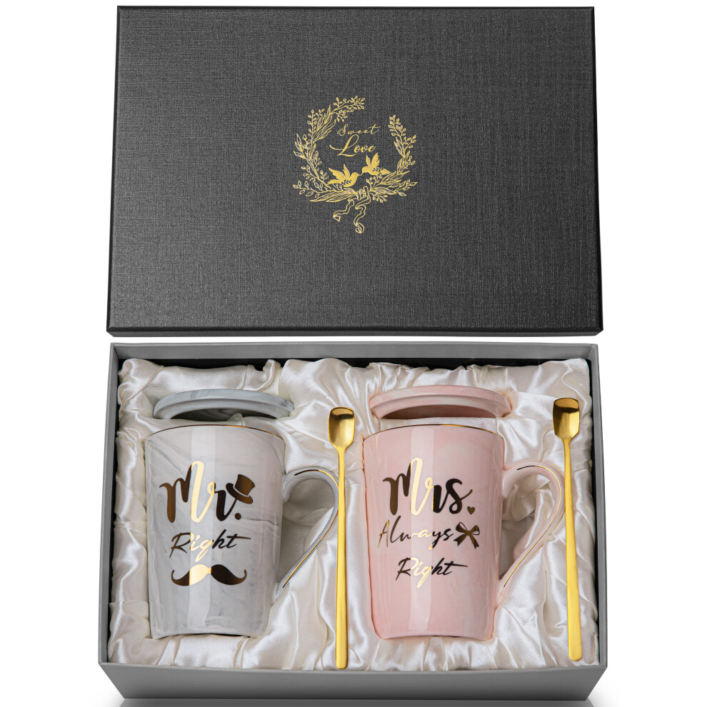 Mr Right and Mrs Always Right Couples Mug Sets for Wedding Gifts, Engagement Gifts, Bride to be, Bridal Shower, Bride and Groom, 14oz Ceramic Marble