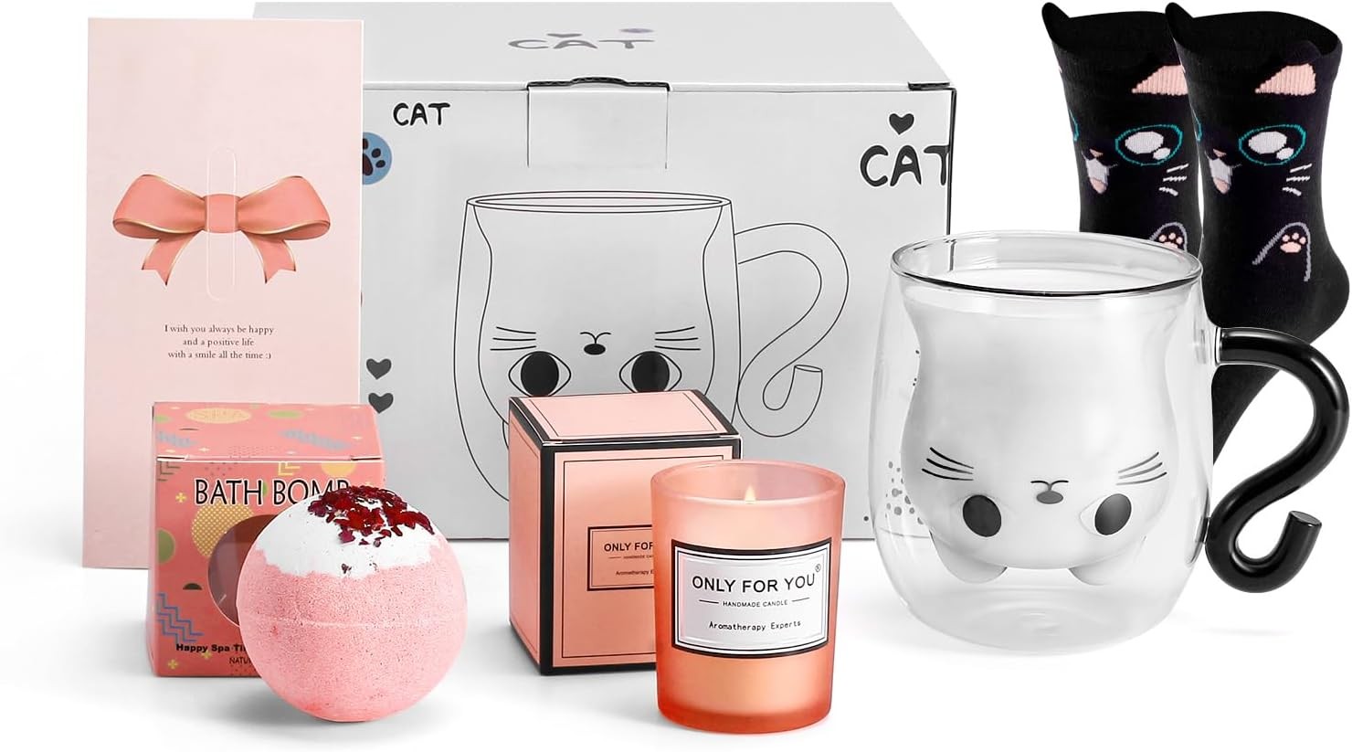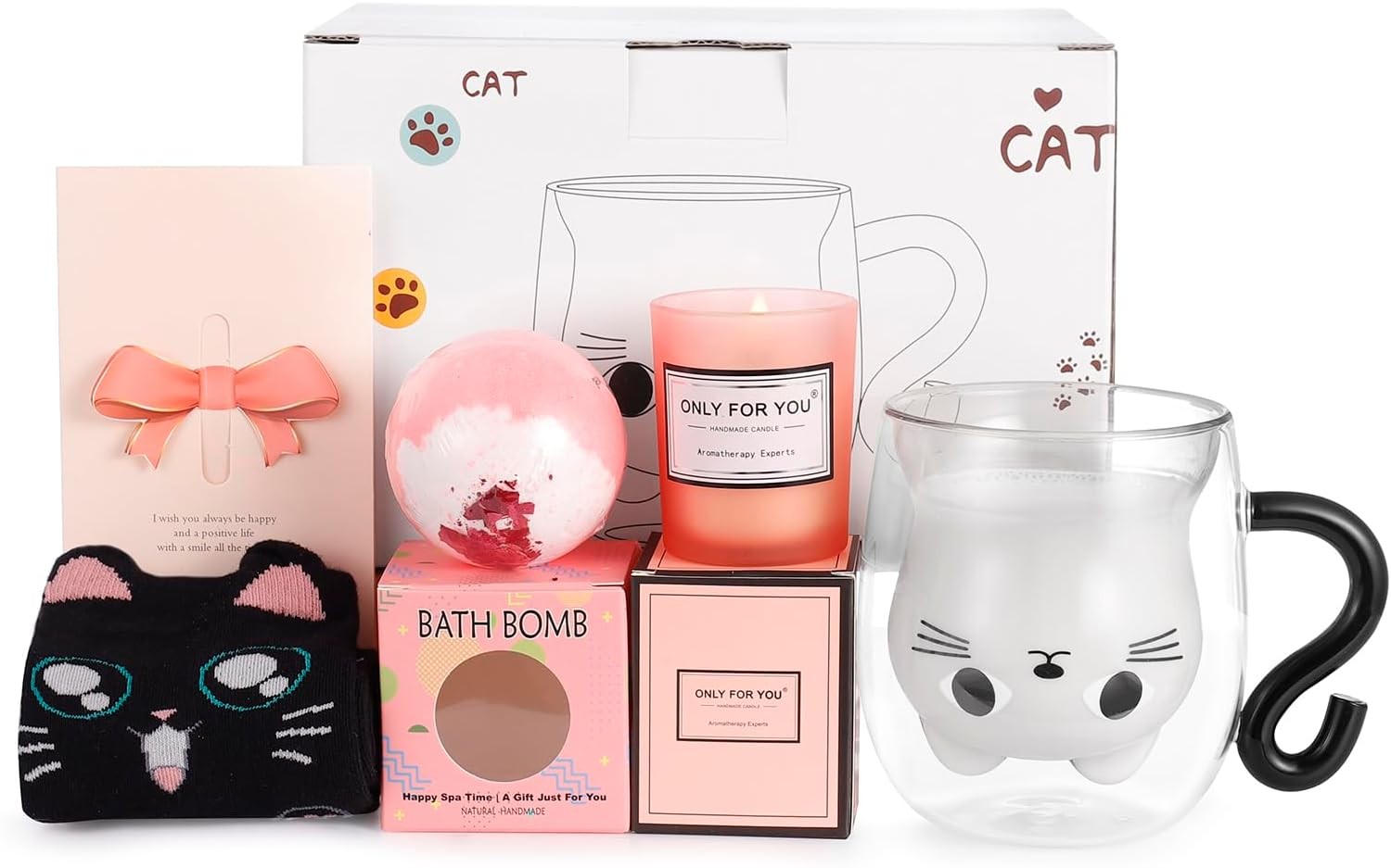 Cat Mug Sets, Christmas Gifts for Women, Presents for Her, Birthday Gifts for W