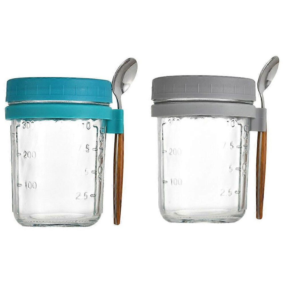 (As show, One size) 2 Sets of Portable Yogurt Cup Glass Cup Oatmeal Mug Outdoor Breakfast Cup with Spoons 350ml