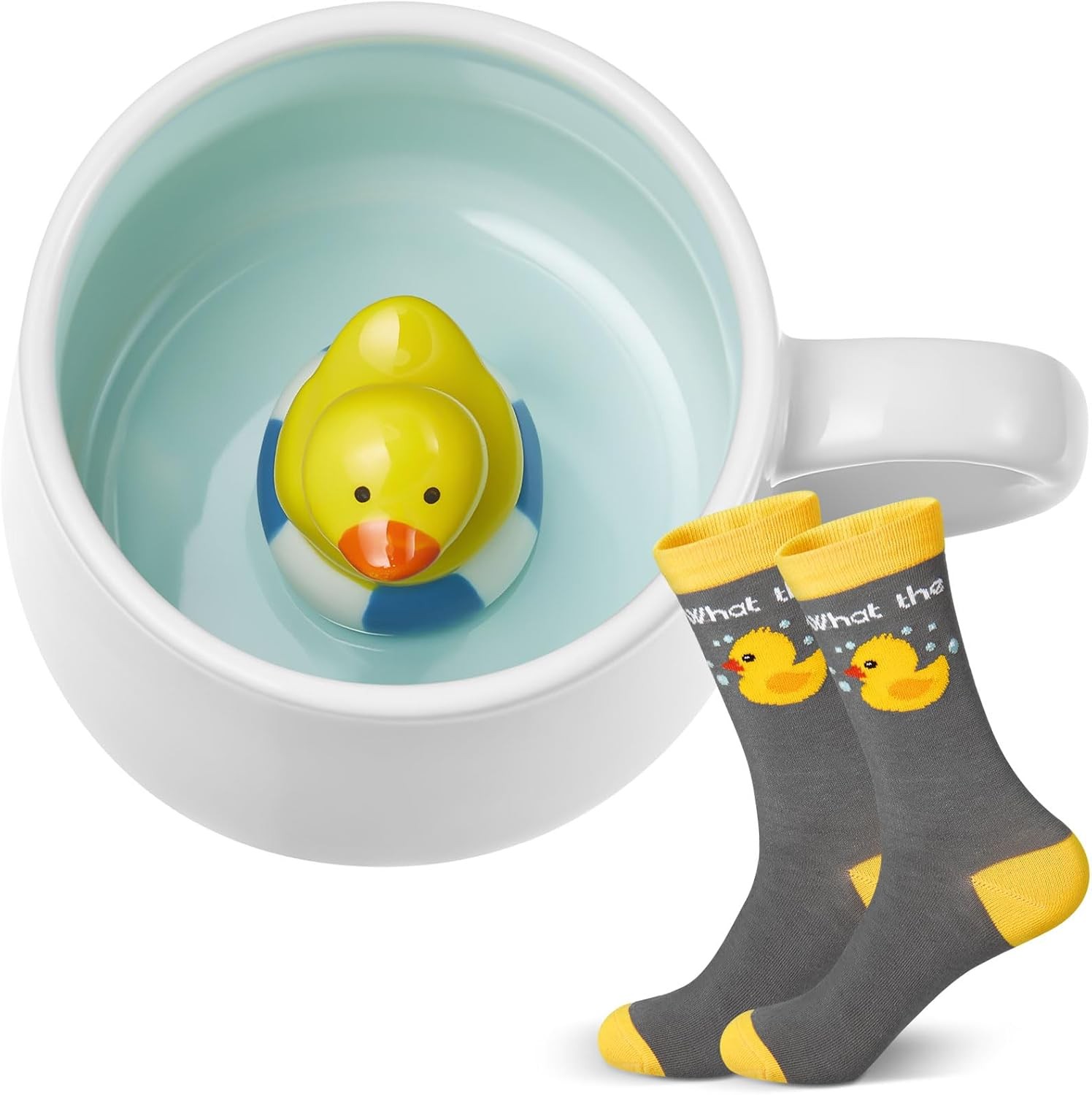Nuenen 2 Pieces Duck Gifts Sets, Unisex Duck Socks 3D Coffee Mug for Christmas,
