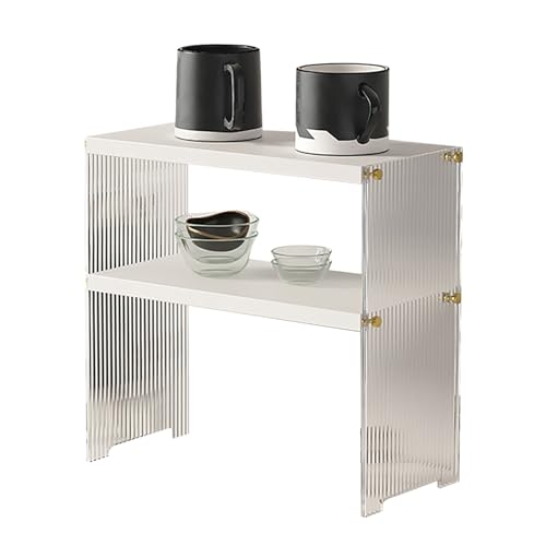 Segrehy Coffee Mug Storage Shelf Stable Support Large Capacity Countertop Organizer Living Room Bedroom (White 2 Tier)