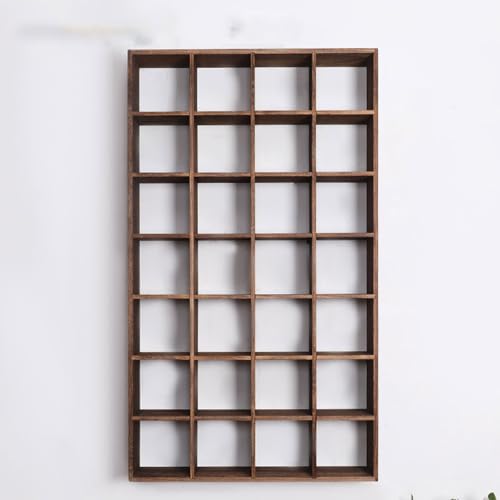 SXEVZOO 8 12 15 20 30 40 Grid Wooden Mug Display Shelf Wall Mounted, Teacups/Shot Glass/Coffee Rack, Multi Cup Storage Shelves for Home Office Restaurant(35 Grid/56.5x78.5cm)