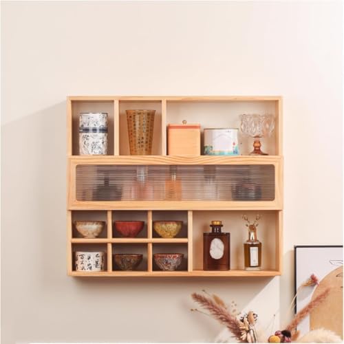 Xalteafe Curio Shadow Box Shelf,Grid Wooden Mug Display Shelf,Wall Mounted Tea Cup Holder,Tea Cup Rack For Storage,With Large Capacity,For Kitchen Bar Storage Home & Office Display