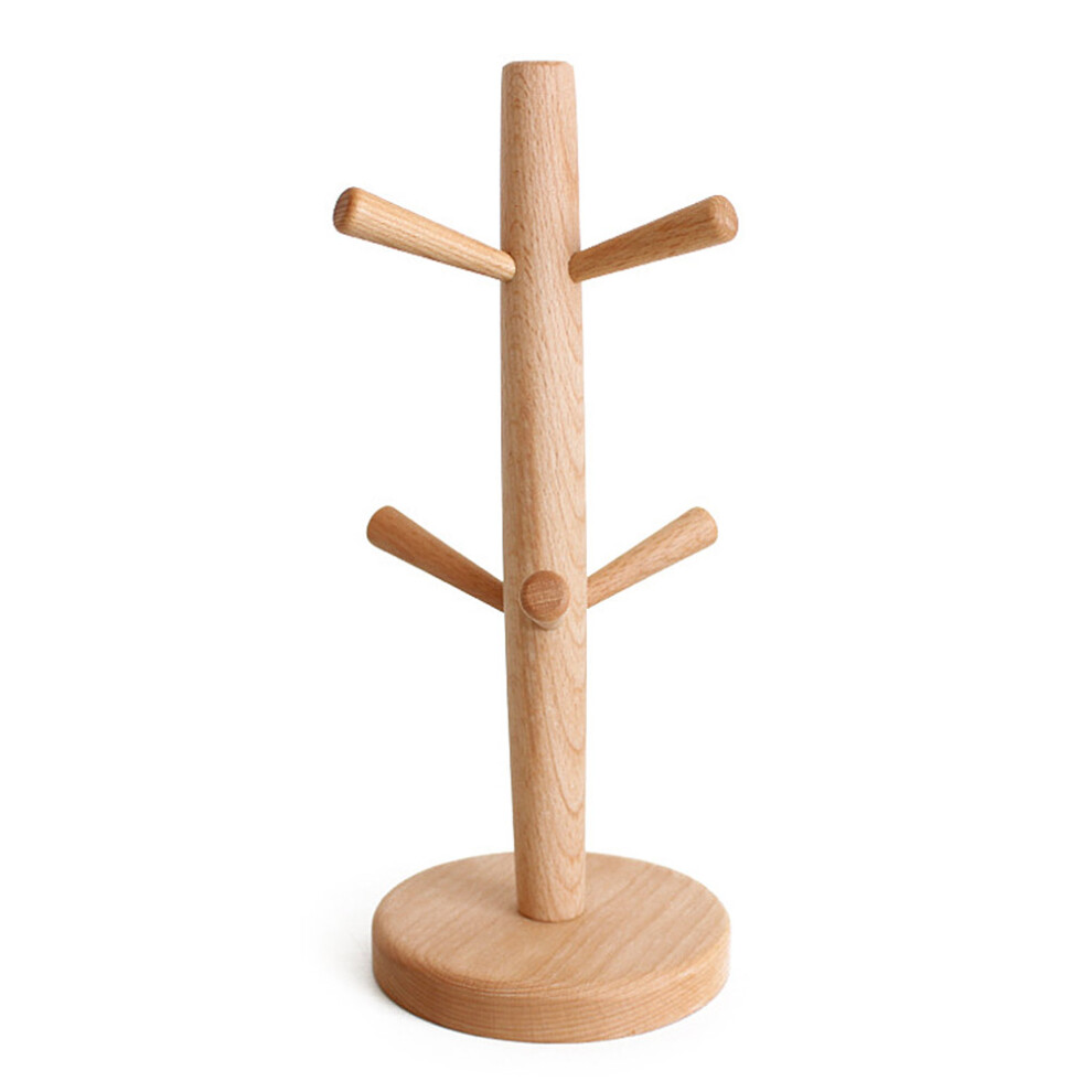 6 Cup Natural Mug Beech Wooden Tree Stand Kitchen Mugs Cups Holder Storage Rack