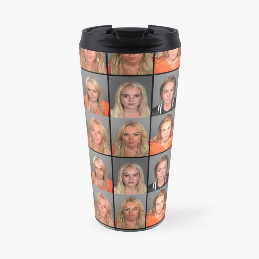 Insulated Travel Coffee Mug LINDSAY LOHAN MUGSHOTS Stainless Steel Cup Tumbler 17oz