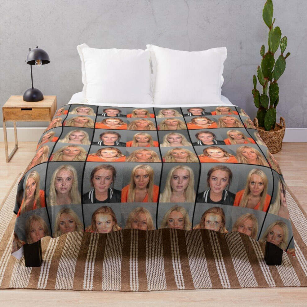 Fleece Throw Blanket LINDSAY LOHAN MUGSHOTS for Sofa Couch Kids 60 x 50 Inches