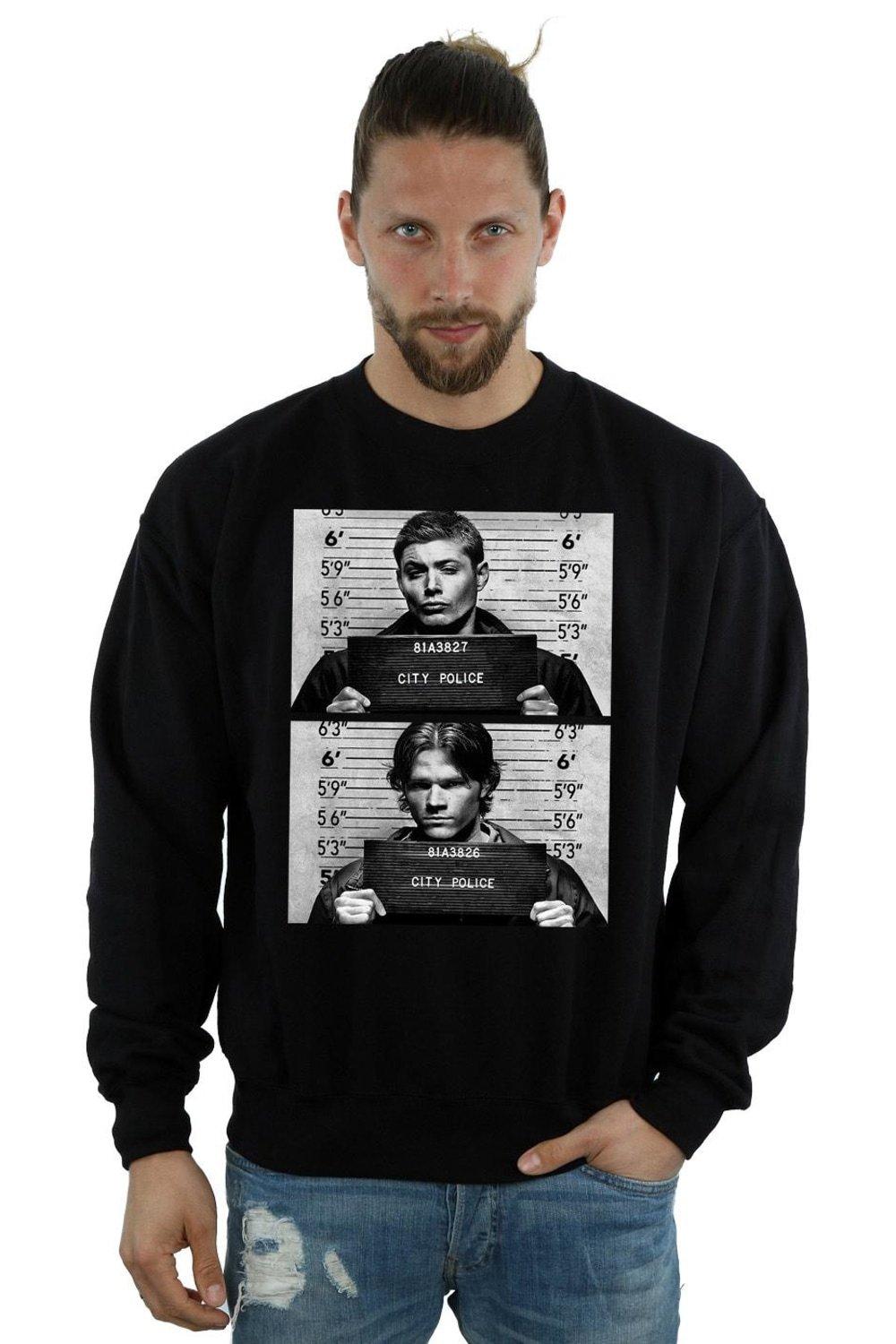 Supernatural Men Winchester Mugshots Sweatshirt in Black | Size: 3X-Large