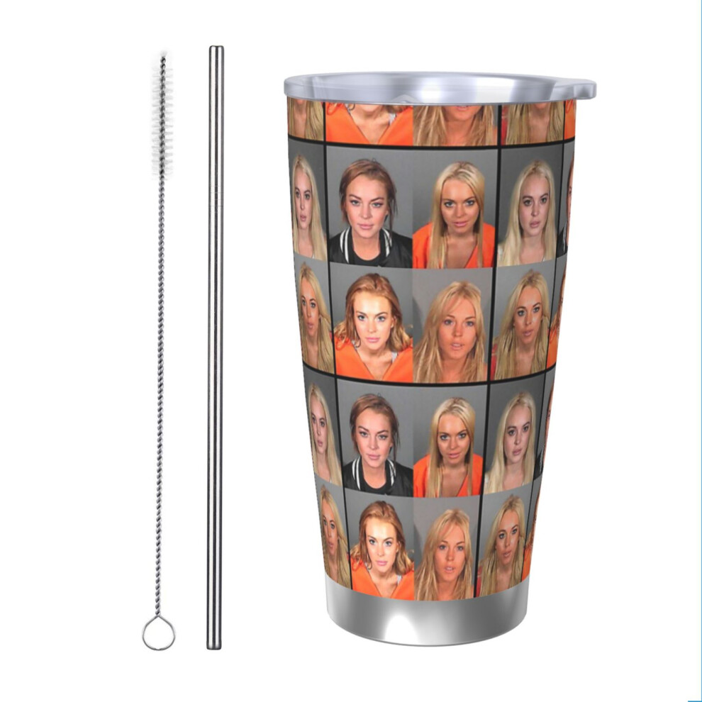 (LINDSAY LOHAN MUGSHOTS_1013) Stainless Steel Tumbler 20oz Insulated Coffee Travel Funny Birthday Christmas Gifts for Women Men Boss Coworker