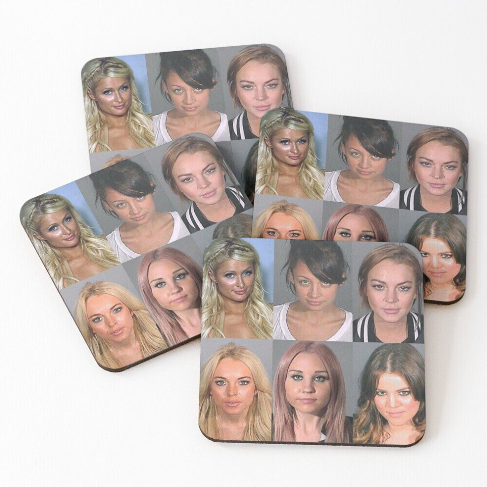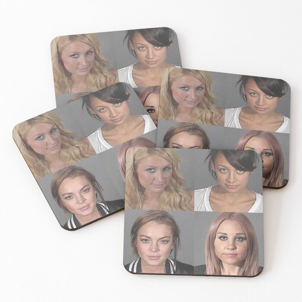 Leather Coasters Celeb Mugshots Set of 4 / 4 x 4 inch