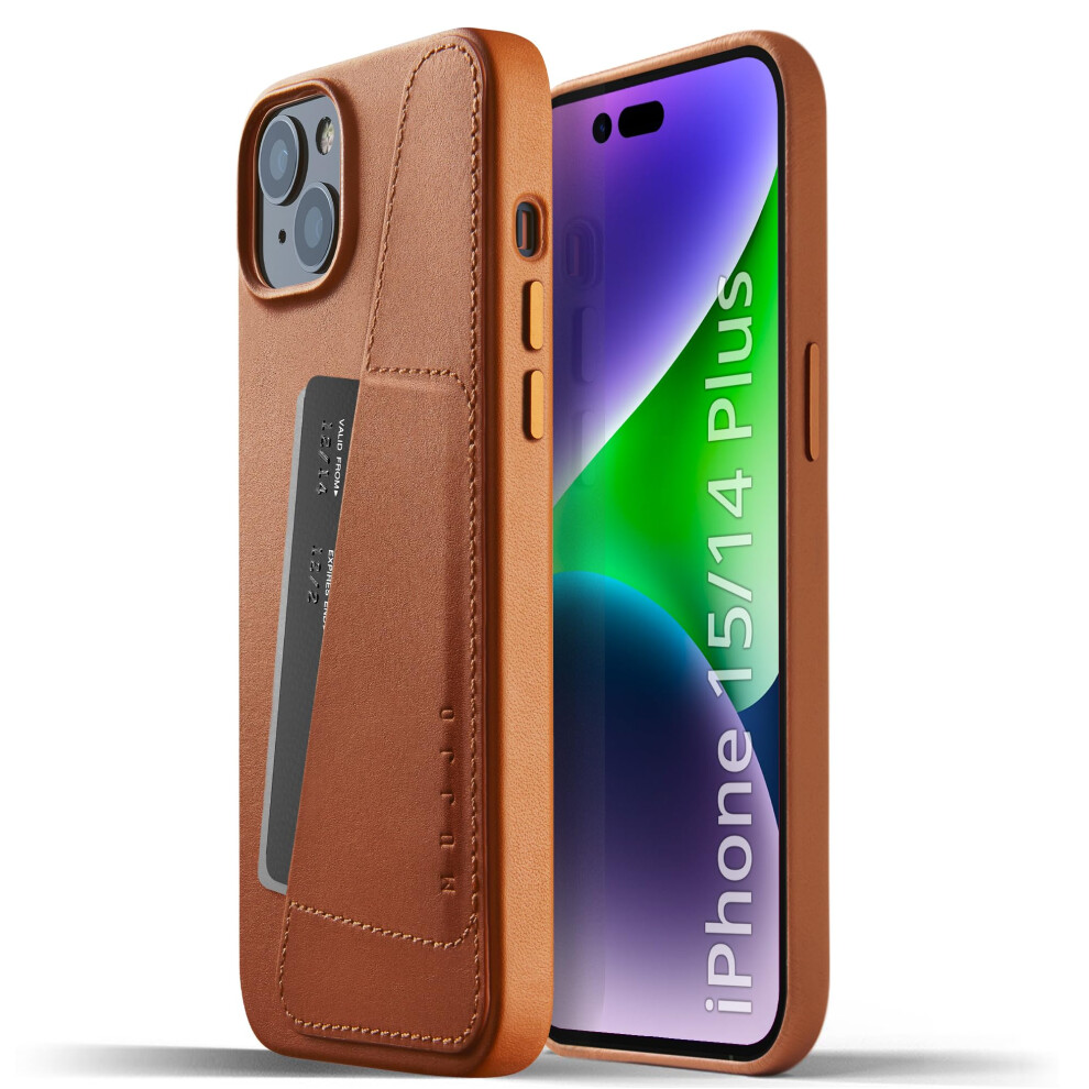 Mujjo Full Leather Wallet Case for iPhone 15 Plus, iPhone 14 Plus with Card Holder (Tan)