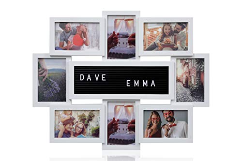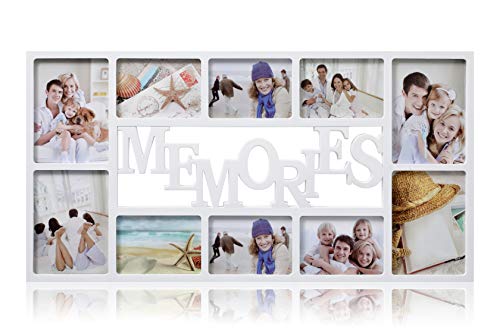 ARPAN 10 Pictures Multi Aperture Photo Frame - White Wall Mount Memories Picture Frame with Front Polystyrene Sheet Holds 6 X 6''X4'' Photos, 4 X 5''X7'' Photos - White Plastic Photo Frame