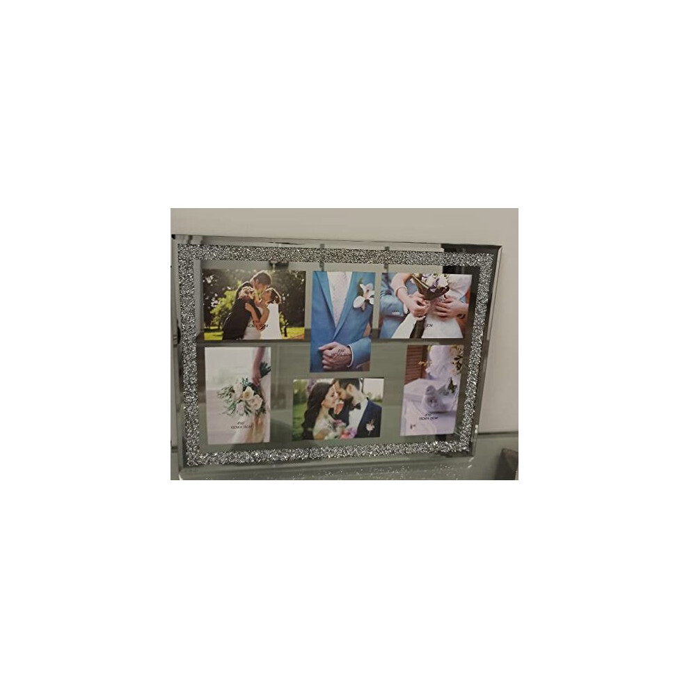 Multi Aperture 6 Picture Photo Frame 6?x4? Hold 6 Picture Silver Mirrored Crushed Jewel Crystal Diamante