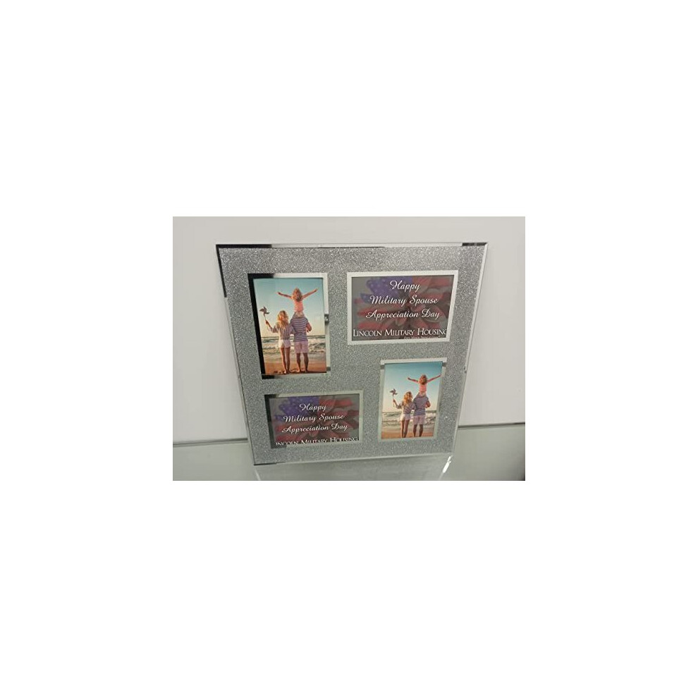 Silver Mirrored Crushed Glitter Crystal Diamante Multi Aperture 4 Picture Photo Frame 6?x4? Hold 4 Picture (35X35cm)