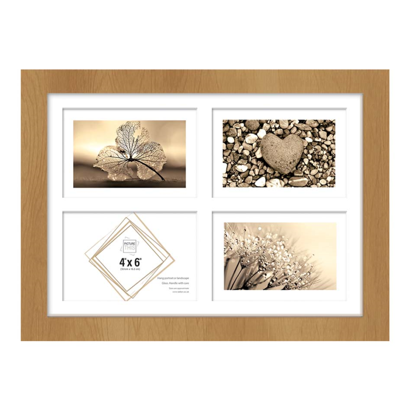 Photo Picture Frame Multi Aperture Real Wood Frame Holds 5 6x4" Photos Wall Art